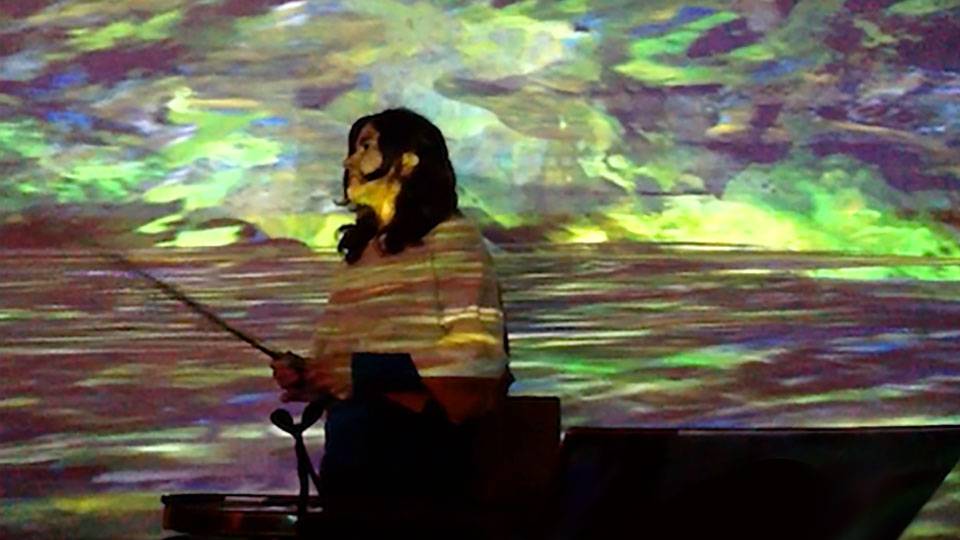 Adriana Sa performs the finale of her PhD with an instrument which combines a zither and 3D software that operates on amplitude and pitch detection from the zither input.