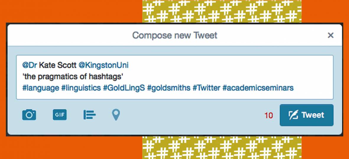 In this talk I will consider the pragmatic function of hashtags on the social networking site Twitter. I take a relevance theoretic perspective, and argue that as part of an ostensive stimulus the hashtags should have a role to play in achieving optimal relevance for the intended audience.
