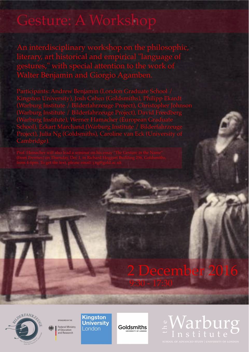 The Walter Benjamin London Research Network (WBLRN) and the Warburg Institute is pleased to announce a two part workshop on Gesture with Prof. Werner Hamacher.