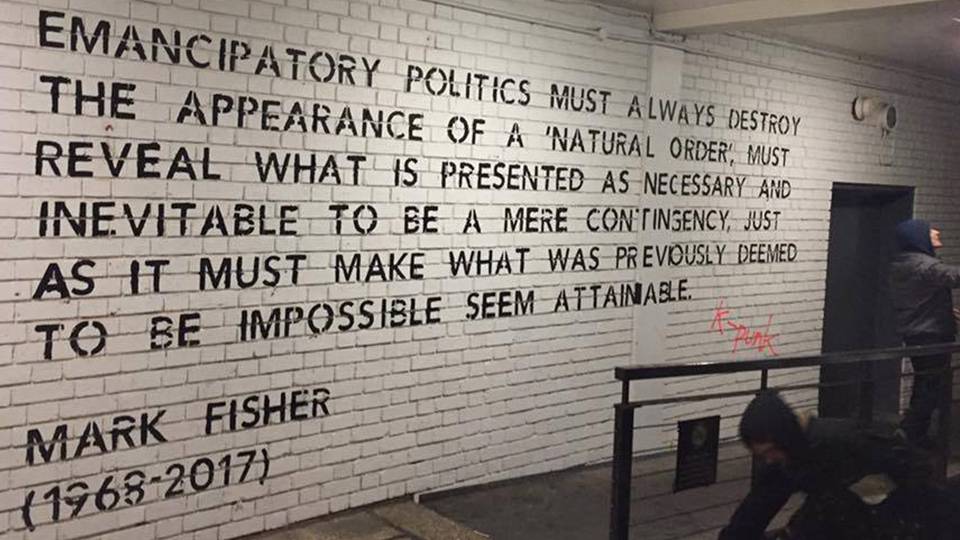 The Mark Fisher Memorial Lecture is hosted by the Department of Visual Cultures annually in January. Each time, a speaker will be invited to engage with the themes and ideas written about by Mark with an eye to taking them further or, indeed, somewhere else.
