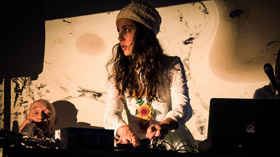 With each result she creates a new performance, combining moving images and sound. A multimedia narrative is created, using voice, electronics, objects, toys and data from her personal archive. Images and soundscapes are created in real time.