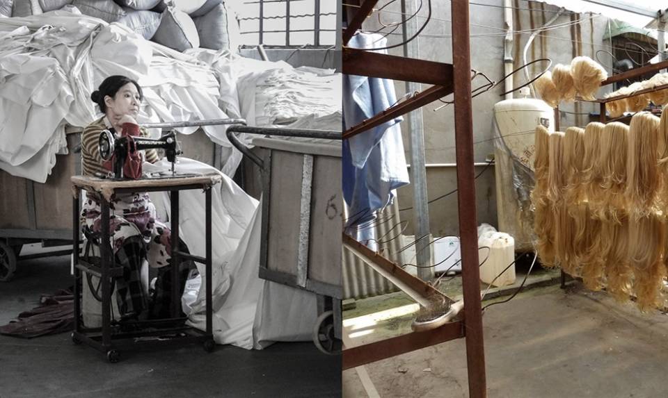 A preoccupation with hidden labour links the work of Janis Jefferies and Emma Tarlo. Taking us backstage to cloth factories in China and hair workshops in India and Myanmar, they draw attention to working landscapes in which materials, fibres and machines take on haunting proportions. Their photographs invite us to recognise connections that are often obscured between the lives of workers in Asia and the material products that end up in our high-streets and homes.