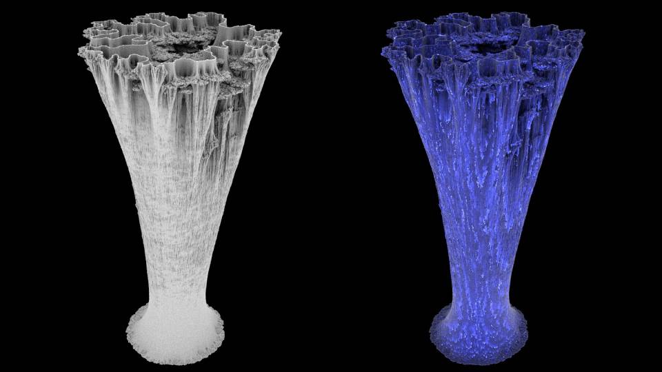 Morphogenetic Creations is an ongoing series of artworks that explore how intricate complex form, as often seen in nature, can be created emergently through computational simulation of growth processes. Inspired by the work of Alan Turing, D'Arcy Thompson and Ernst Haeckel, it exists at the boundary between art and science.