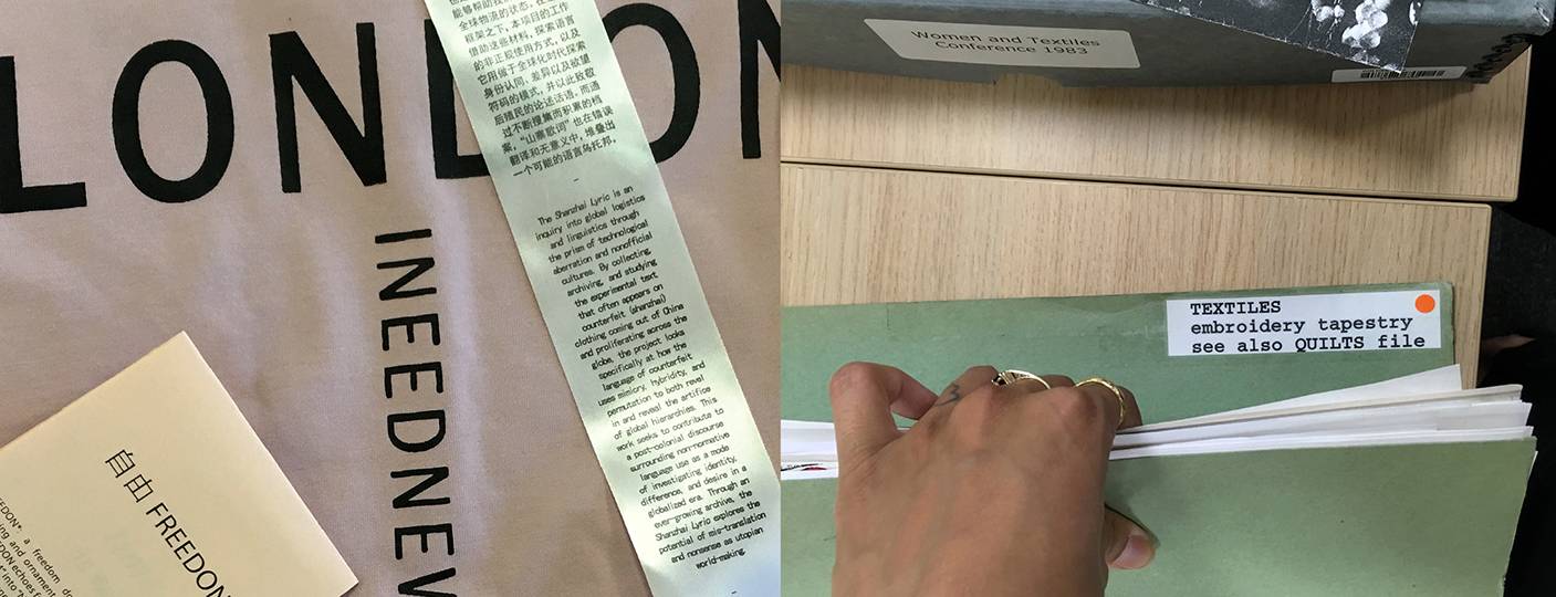 Shanzhai Lyric is a body of research focusing on radical logistics and linguistics through the prism of technological aberration and nonofficial cultures. The project takes inspiration from the experimental English of shanzhai t-shirts made in China and proliferating across the globe, to examine how the language of counterfeit uses of mimicry, hybridity, and permutation to both revel in and reveal the artifice of global fashion hierarchies. Viewing this as part of a larger aesthetic strategy of apparent nonsense as a way to disrupt the relentless forces of commodification and make space for hybrid, liminal and illegible futures, this work seeks to contribute to a de-colonial discourse surrounding the use of non-normative language as a mode of resistance. Shanzhai Lyric has previously taken the form of poetry-lecture, essay, installation and archive: @shanzhai_lyric