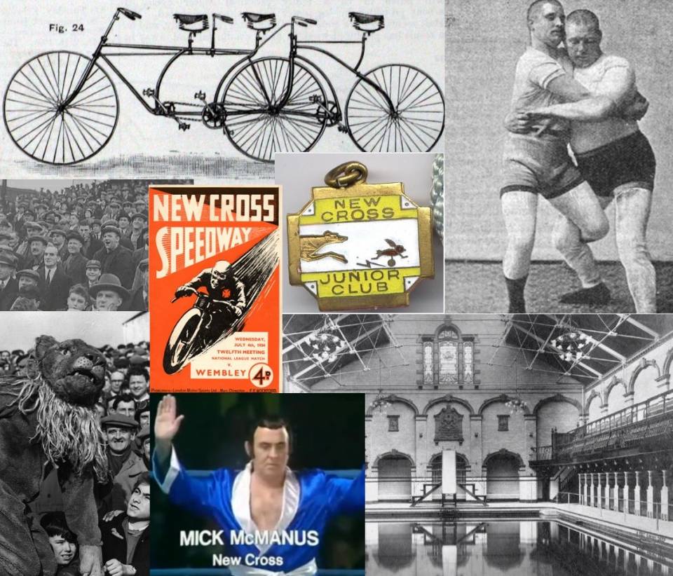 The New Cross Stadium, the Den, wrestling and boxing gyms, horse racing and running tracks, cycling, roller skating, the New Cross Public Hall, Laurie Grove Baths, Fordham Park and more. As well as sporting venues (many now vanished) these places have been important centres of social and cultural life.