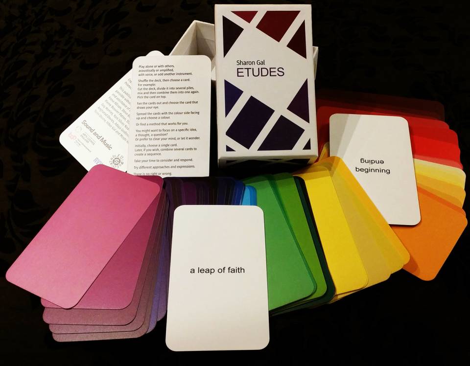 Etudes by Sharon Gal is a collection of scores and propositions, presented as a deck of 78 cards, with text on one side and colour on the other.