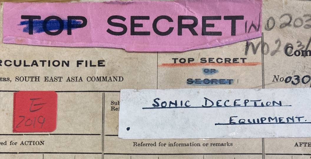 Declassified World War Two documents in the National Archives use terminology such as ‘Camouflage ‘B’,’ ‘Aural Deception,’ ‘Sonic Deception,’ ‘Sonic Warfare’ and ‘Soniferous Deception’ to describe strategies intended to deceive enemy ears; contrasting historical systems were deployed to amplify and augment battlefield listening.