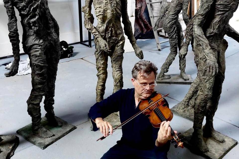Robert Saxton’s solo sonata is the result of many years of collaboration with Peter, particularly on his chamber music. In recent years they had begun to discuss a solo violin sonata, and in the summer 2023, Robert completed an extraordinary five-movement work, in part inspired by Peter’s paintings and drawings of the River Thames. This work has its world premiere at the Pharos Contemporary Music Festival Nicosia on the 4th of October.