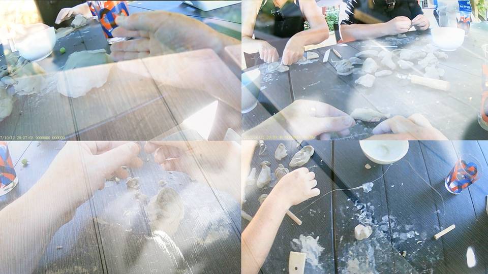 ‘There’s only all of us’ is a short film that loops and layers multiple perspectives of a single event. A family are making each other from clay. Body cameras film and are filmed. Image and sound shift and repeat finding patterns and connections to form a collective subjectivity.