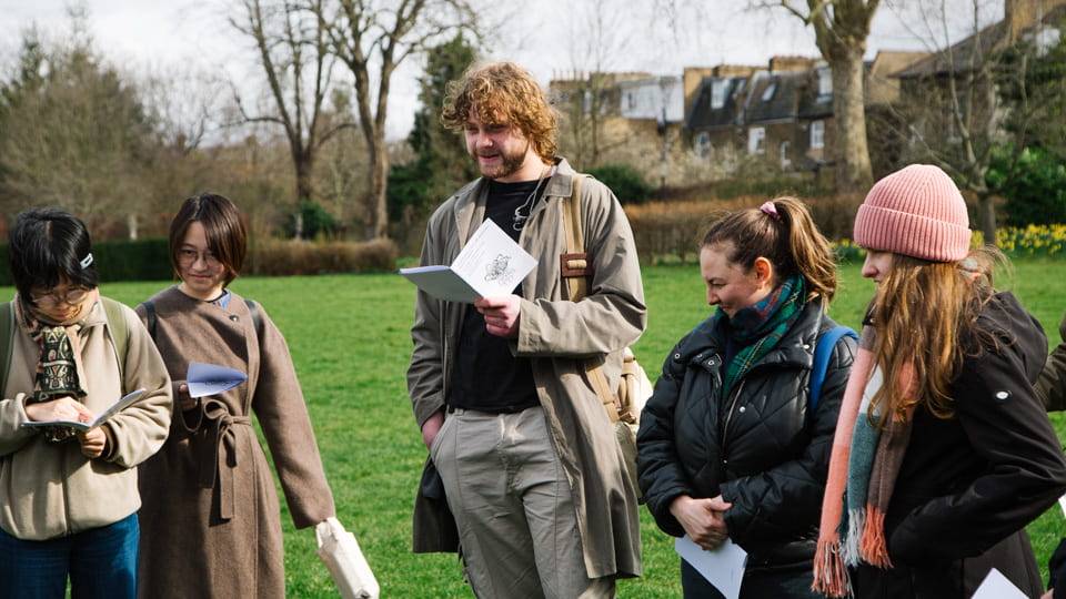 Drawing from the transformative potential of art practice and ecofeminist decolonising pedagogy, the guided walk Learning Collaboration with Fungi (co-designed by Lenka Vráblíková and Elspeth Mitchell) cultivates skills critical for fostering social and environmental justice. In addition to learning about the incredibly diverse biology and ecology of fungi, its aim is to facilitate unlearning of harmful habits such as anthropocentrism, extractivism, competitiveness, and accumulation-driven individualism and, instead, re-learn collaboration, care, reciprocal sharing, and compassion. The walk will be 2 hours long and will accommodate 20 participants (online booking together with information on accessibility will be available in advance). The walk will take place on the Goldsmiths campus.