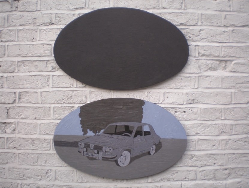 circular and elliptical canvases, representative of an all seeing eye, provide glimpses into Ungureanu's world of ambiguous imagery. Combined with his small sculptural pieces, we are left questioning whether he is providing us with post-communist detritus or postcards from a brave new world.
