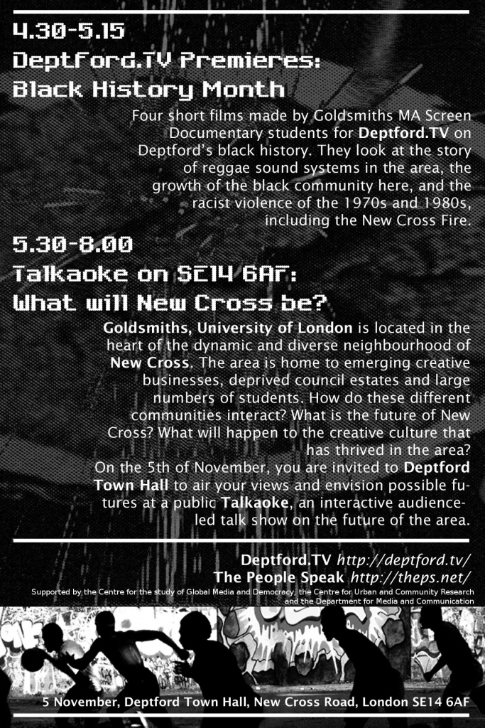 On the 5th of November, you are invited to Deptford Town Hall to air your views and envision possible futures at a public Talkaoke, an interactive audience-led talk show on the future of the area.