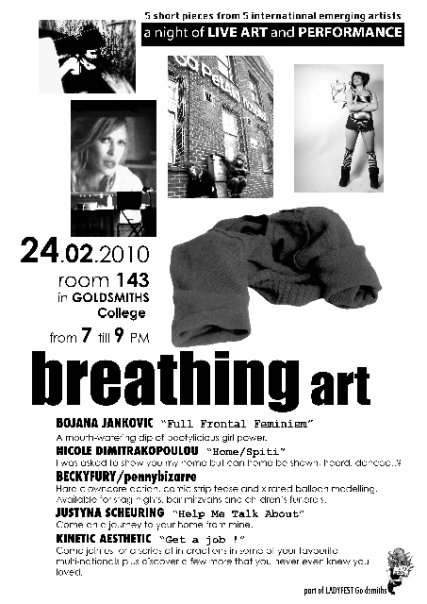 Featuring newly devised work from: Bojana Jankovic, Nicole Dimitrkopoulou, Beckyfury, Justyna Scheuring and Kinetic Aesthetic.