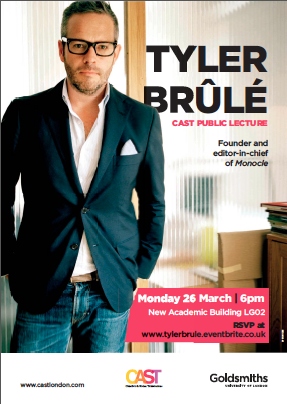 CAST is excited to announce Tyler Brûlé, Founder and Editor-in-Chief, Monocle will be speaking at Goldsmiths as part of the CAST public lecture series. www.tylerbrule.eventbrite.co.uk to book your free ticket.