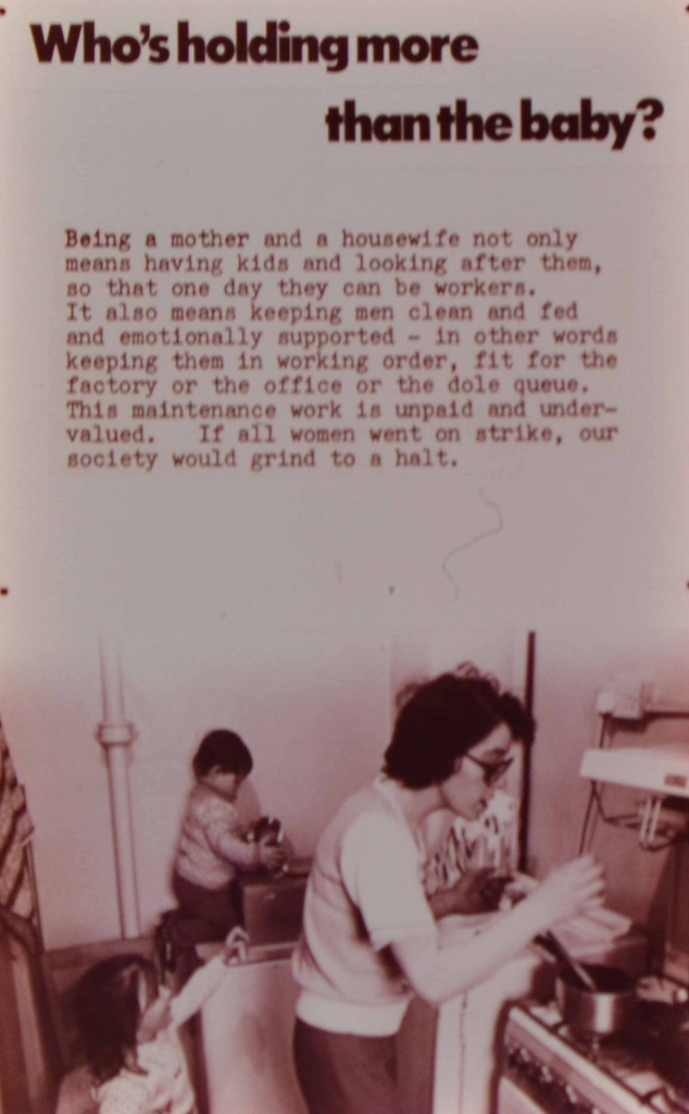 The Women’s Art Library presents a display of the project 'Who's Holding the Baby?' a slide kit created by the feminist action group of the 1970s, the Hackney Flashers as a consciousness raising guide.