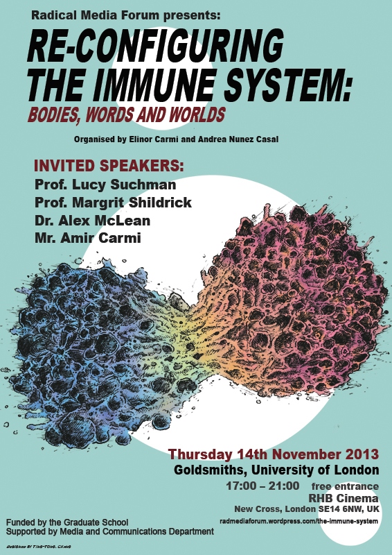 Re-Configuring the Immune System is funded by the Graduate School, Goldsmiths and is supported by the Media and Communications Department, Goldsmiths.