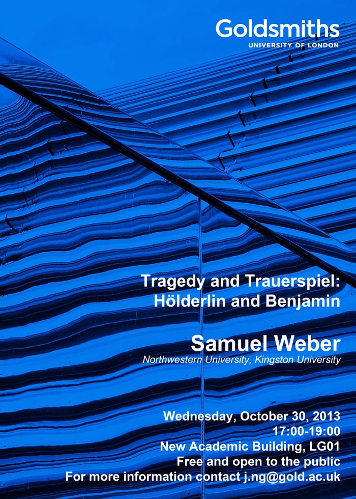 Suggested preparatory readings for this lecture include Benjamin's remarks on the relation of tragedy to Trauerspiel in The Origin of the German Mourning-Play, as well as Hölderlin's Remarks on Oedipus and Antigone.