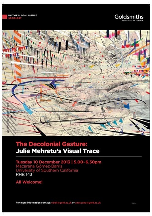This talk addresses the notion of the public square in relation to the work of Fred Moten and Stefano Harney's concept of the "Undercommons." I chart a geography of the undercommons in relation to Julie Mehretu's "Mogamma" paintings and to recent erruptions in Chile around the fortieth anniversary of the military coup. In the ruins of student debt, financial reorganization, and militarization in the Global South, the undercommons invite a different way to understand the visual gestures of decolonial resistance that differently orient us to the ongoing possibility of the public square.