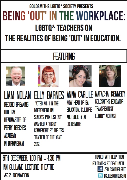 Goldsmiths LGBTQ* Society Presents: 'Out' in the Workplace: LGBTQ teachers on the realities of being 'out' in education