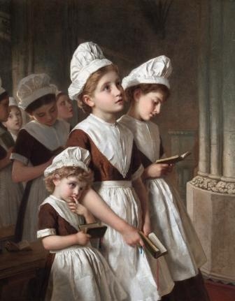 Image: Foundling girls at prayer in the Chapel c.1855 by Sophia Anderson, c/o Foundling Museum