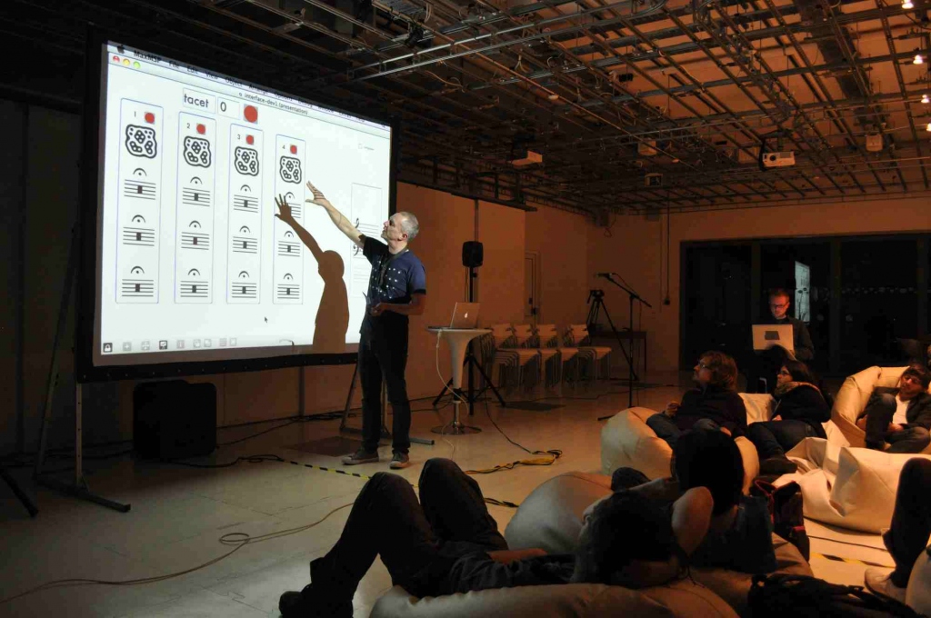 Photo: Mick Feltham explaining his work, photo by Ed Hughes
