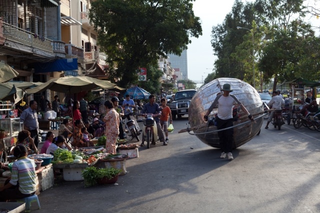Svay Sareth, Mon Boulet , 2011, Durational performance, 5 days, Siem Reap to Phnom Penh, Cambodia, Single-channel video with sound, 8' 25'' looped Image courtesy the artist and SA SA BASSAC.