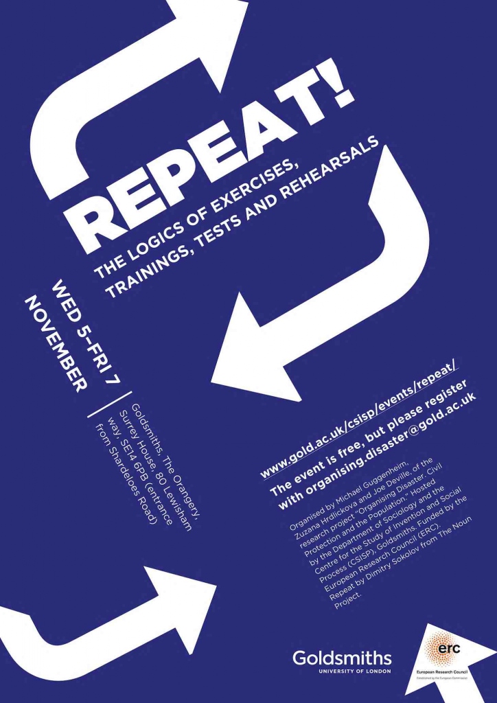 One way much of approaching such renderings of the world within social science and social theory has been to see them as involved in forms of performance or enactment. Following the ethnomethodology of Garfinkel, Goffman’s frame analysis and Turner’s ritual theory, a new wave of social theory has looked with fresh eyes at the enactment of the social and how it may be socially and materially achieved. Many of these ideas conceive of the performative as an ongoing accomplishment. But such a conception often tends to miss a crucial element of the performative: the time-based relationship between preparation and performance. In this conference, we would like to explore this temporal relationship and the social and material effects to which it gives rise, by focusing on the similarities and differences between the full range of social practices that depend on preparation. Rather than extending theories of theatre to the whole of society, therefore, we ask how a certain element of theatre -- the rehearsal -- exists in other social domains, including those of testing, training and the exercise.