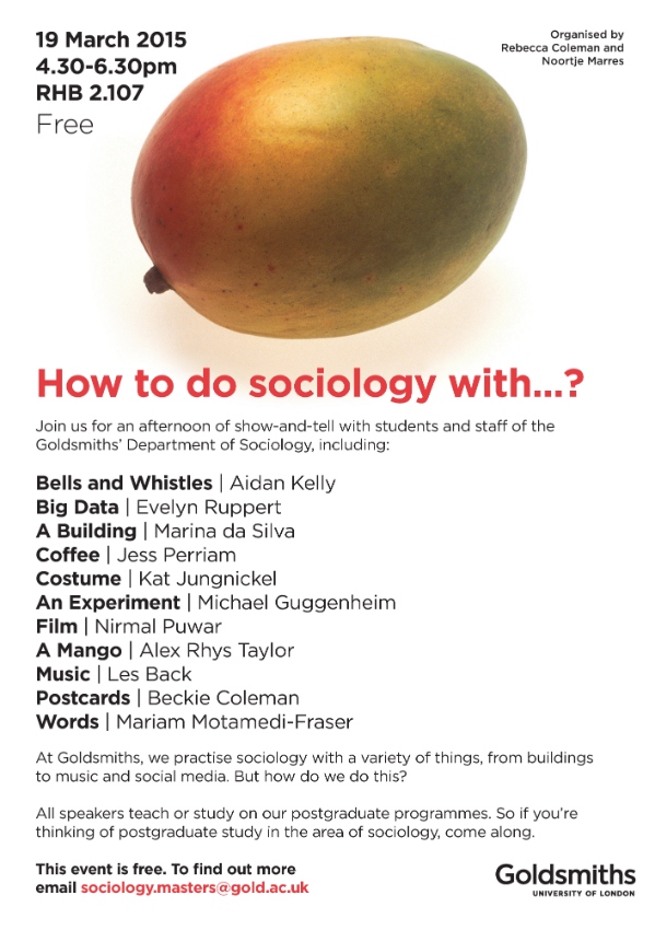 Join us for an afternoon of show-and-tell with students and staff of the Goldsmiths’ sociology Department, including:
