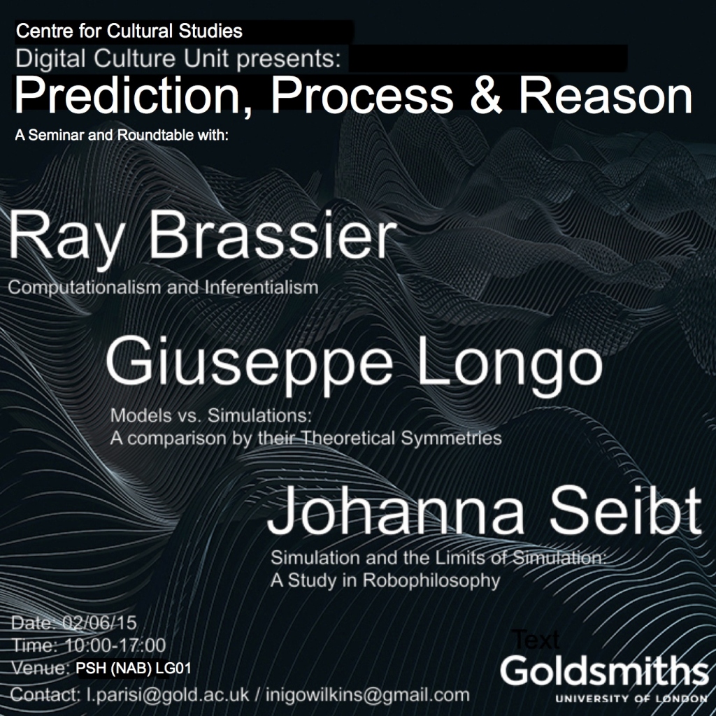 A one-day postgraduate research seminar and roundtable discussion with Ray Brassier, Giuseppe Longo and Johanna Seibt, sponsored by The Doctoral Training Centre (Goldsmiths and Queen Mary University).