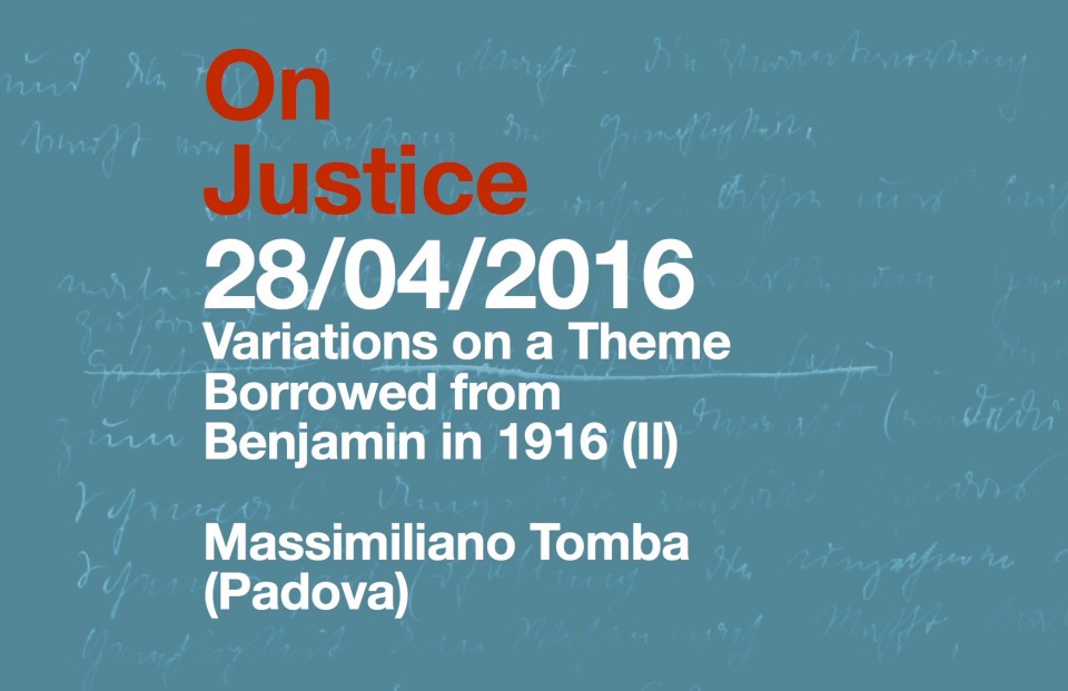 Variation 2: Massimiliano Tomba (Padova) reconsiders Benjamin's idea of justice as a transformative form of anticipation that carries its own criterion of its rightness.