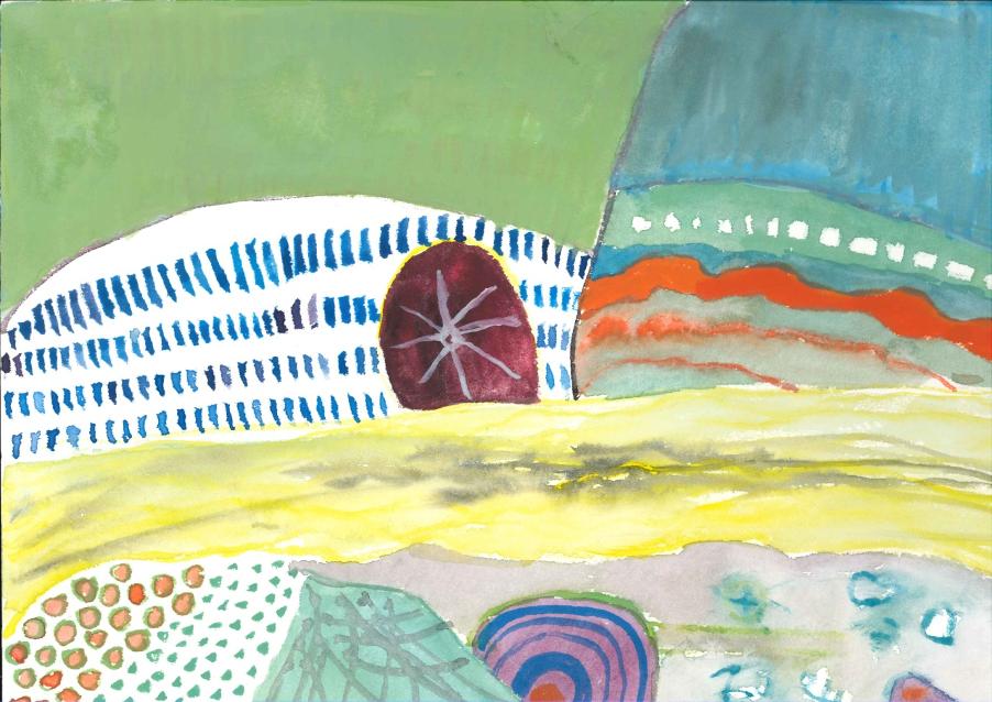 Image 8: Under the River 1, 2018. Painting by Geeta Roopnarine made in the Special Collections and Archives Study Room, Goldsmiths