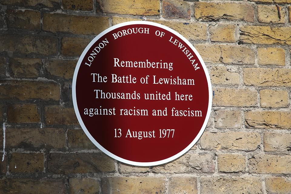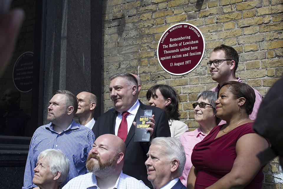 The Lewisham Maroon Plaque reading ‘Remembering The Battle of Lewisham. Thousands united here against racism and fascism. 13 August 1977’ was unveiled by Councillor Joan Millbank, Lewisham Council's Cabinet member for the Third sector and community.