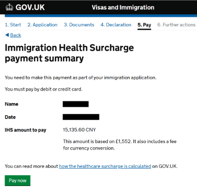 A calculation of your IHS will be shown on screen in your home country’s currency.