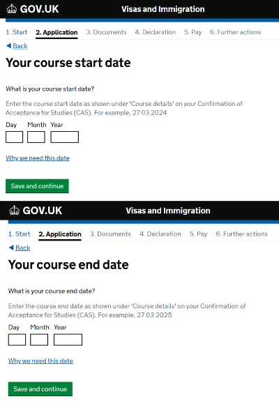 Then on the next page, please enter your course end date as listed on your CAS document.
