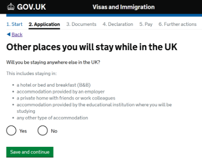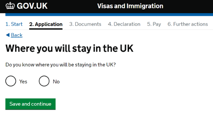 If you do not yet have a UK address confirmed, please select ‘No’ for this question. You will then be asked where you plan to stay in the UK.