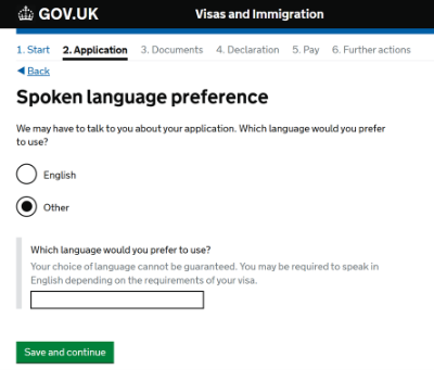 If you select ‘Other’, you will be asked which language you would prefer to use.