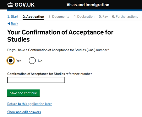 If you used UCAS to apply for your course, select ‘Yes’. Your UCAS number will be on your CAS document.