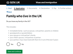This question is asking about your family and any partner that lives in the UK. If you answer ‘Yes’, the next screen (not shown) asks questions about your family or partner in the UK, including their immigration status.