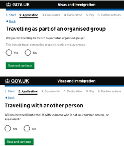 These questions is asking if you will be travelling to the UK as part of an organised group or as an individual. Most students coming to study at the University will be travelling individually.