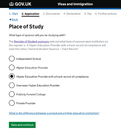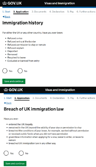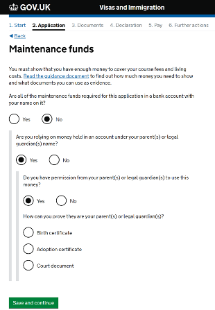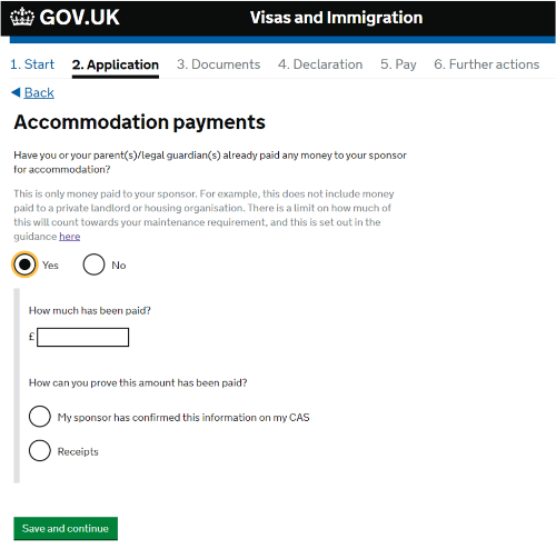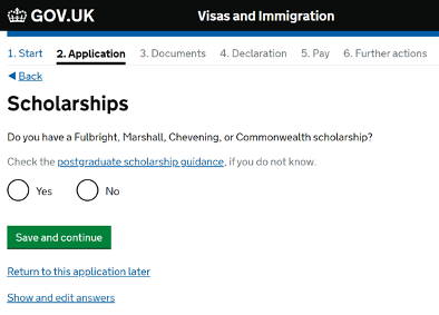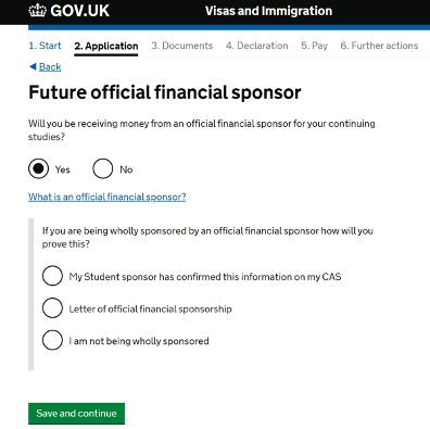 If you select ‘Yes’, you will be asked if you are being wholly sponsored and how this will be proved.