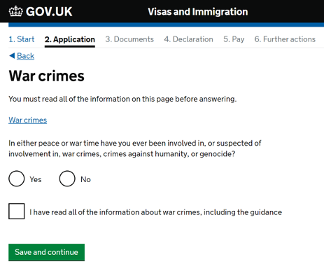 Declare any War crimes - if you are not sure whether to declare something, contact us before submitting your application.