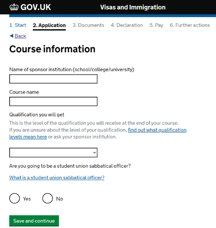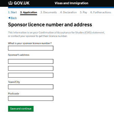 We advise that you have your CAS information to hand for completing the majority of this visa application form.