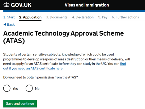 If you did not need to obtain permission from the ATAS, select ‘No’.