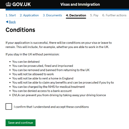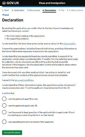 You will then be asked to read through the declaration and confirm that you accept the terms.