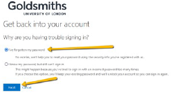Select the 'I’ve forgotten my password' option and click 'next'.