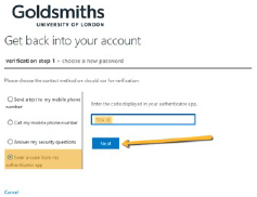 Depending on the authentication methods that have been configured for your account, you will have one or more of the following options to confirm your identity. Follow the instructions on the screen for your chosen method. The image below is for the Microsoft authenticator app: