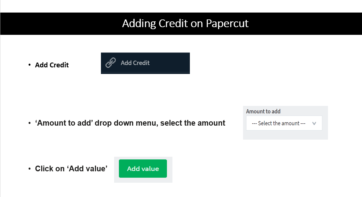 We use a pre-payment system known as Papercut for student printing in the Library.