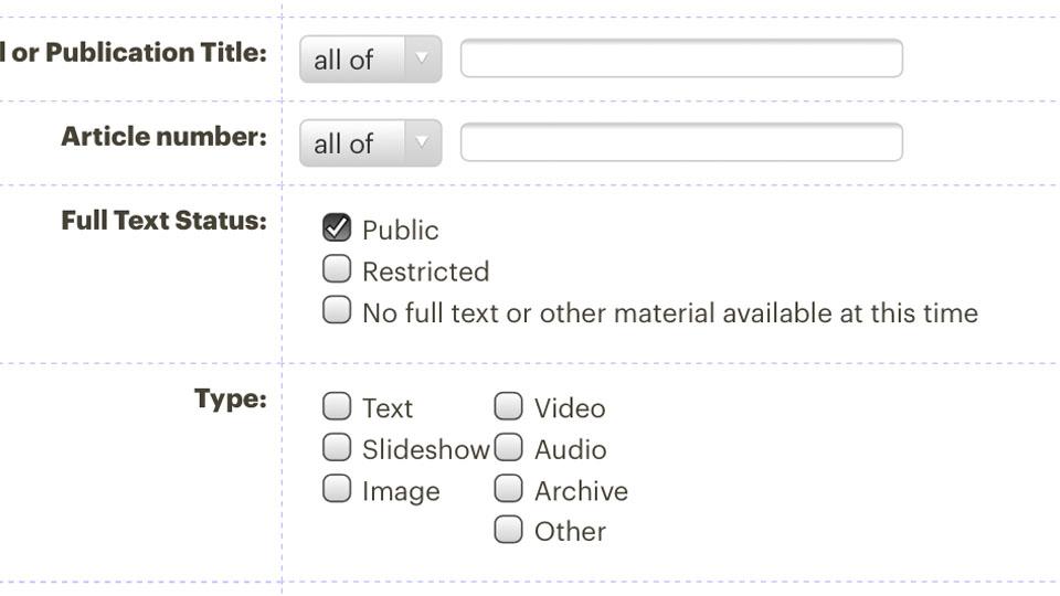In the “Full Text Status” field select “Public” to search for theses with full text availability. If you want to see all theses held on GRO for the department regardless of full text status leave all the boxes unticked.