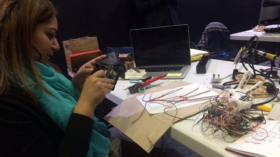Hadeel, an MA Computational Arts graduate who is now studying for her PhD, has spent the past year working on the second version of her BrightSign glove, which turns hand motions into text and speech. In addition to the new developments in the glove's technology, she has also consulted with Rose Sinclair from the Department of Design at Goldsmiths on the best textiles to use for the product.