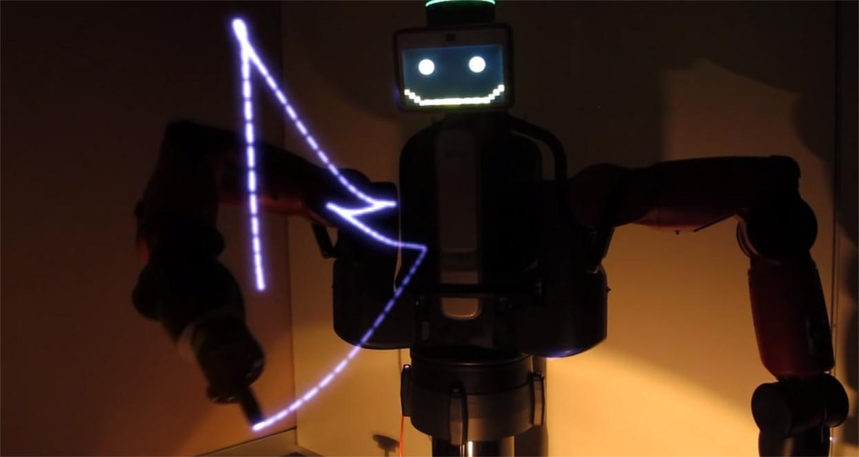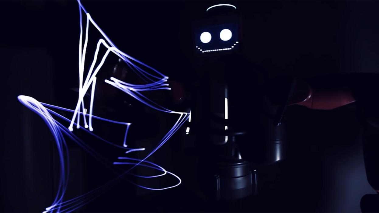 Manufacturing companies often use the Baxter as a workforce factory robot, but this modified Baxter has been designed to draw computer generated calligraphy and graffiti art with a marker on paper, or trace contours and shapes in the air in a robotised “light painting” performance.
